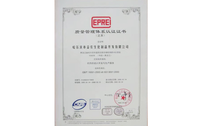质量治理系统认证证书